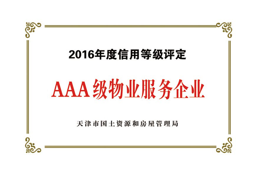 公司目前被授予:中國保安協(xié)會(huì)理事單位、物業(yè)管理綜合實(shí)力入圍企業(yè)、天津市物業(yè)協(xié)會(huì)理事單位、天津市保安協(xié)會(huì)常務(wù)理事單位、天津市保潔協(xié)會(huì)明星企業(yè)、天津市科技小巨人企業(yè)、天津市科技型企業(yè)、天津市物業(yè)管理企業(yè)優(yōu)秀項(xiàng)目經(jīng)理、企業(yè)信用評價(jià)體系A(chǔ)AA級企業(yè)、AAA級誠信經(jīng)營示范單位、AAA級重合同守信用單位、2017年被天津市工商業(yè)聯(lián)合會(huì)評為天津市民營企業(yè)促進(jìn)就業(yè)百強(qiáng)企業(yè)、社會(huì)捐贈(zèng)百強(qiáng)企業(yè)、2018年銷售收入百強(qiáng)企業(yè),2020年被天津市退役軍人事務(wù)局評為天津市吸納退役軍人就業(yè)先進(jìn)單位。